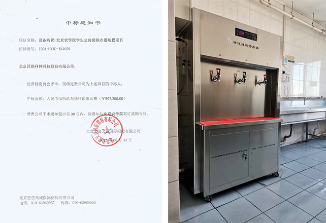 2024年7月,我公司中標(biāo)北京農(nóng)學(xué)院電開水器項(xiàng)目。此次采購(gòu)了國(guó)林電開水器52臺(tái)。分別有一開一直飲,兩開一直飲,三開一直飲三種開水器。