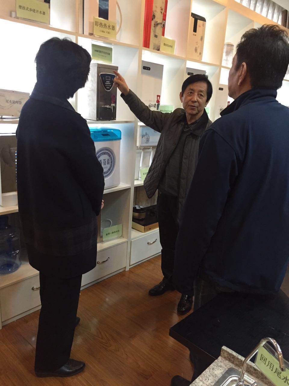 我司董事長向各位領(lǐng)導介紹凈水器尾水回收技術(shù)