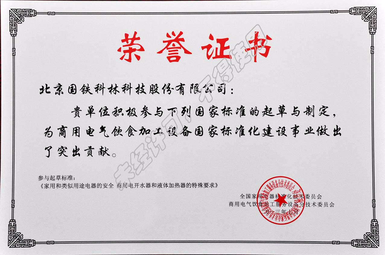 國(guó)家標(biāo)準(zhǔn)起草與制定榮譽(yù)證書