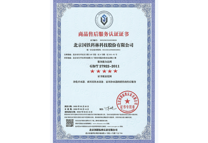 商品售后服務(wù)認(rèn)證認(rèn)證證書(五星)